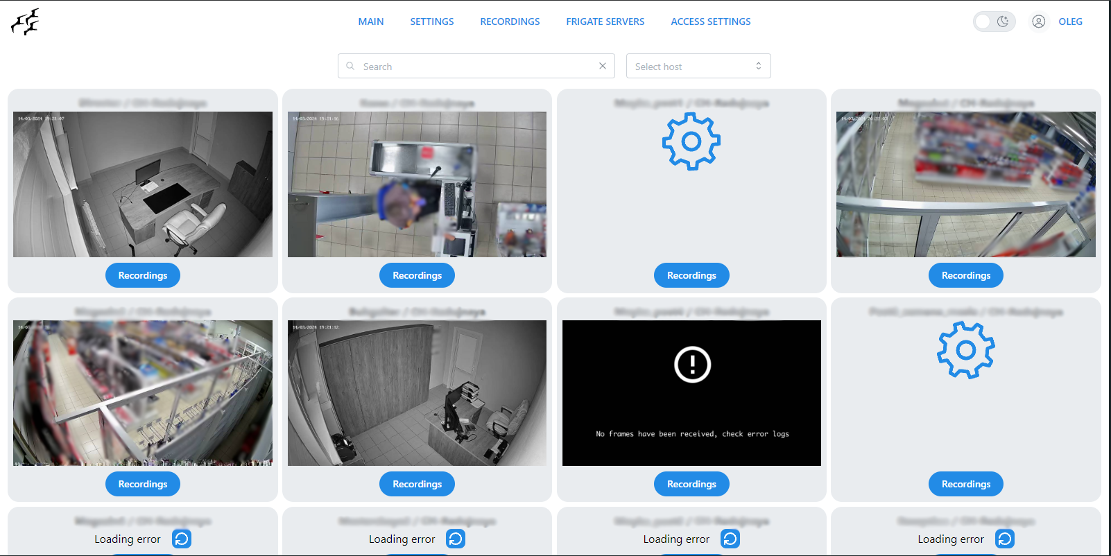 • Main page: Filter cameras by host.
